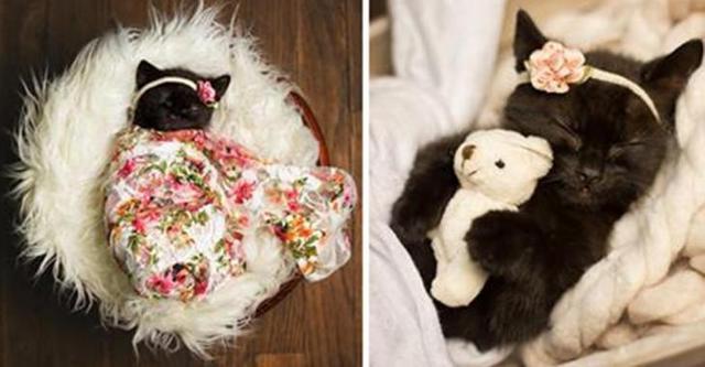 Então, quando ela tinha 9 semanas de idade, ela fez uma sessão de fotos com o gatinho.