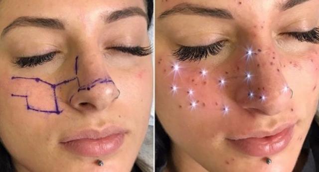 Knapik usa uma técnica especial para tatuar sardas, já que depois de um certo tempo, elas são progressivamente apagadas. E a distribuição de sardas é definida de acordo com a constelação astrológica escolhida pela pessoa tatuada; isto é, sardas são estrelas. Soa bem, não é?
