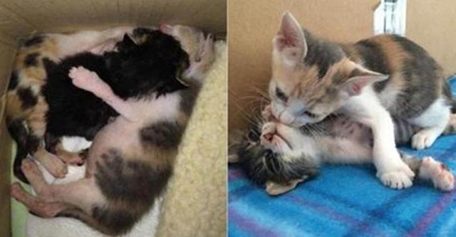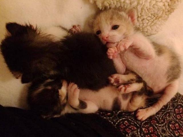 Ela alimentou os dois pequenos gatos que ela chamou de Kaneli e Vanilla. No dia seguinte, eles foram muito melhores.