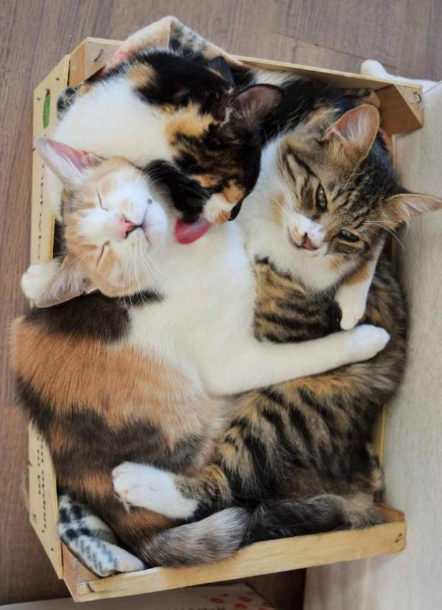 Os 3 gatinhos comemoraram seu primeiro aniversário recentemente e ainda são inseparáveis.