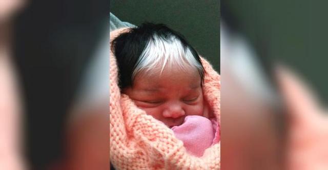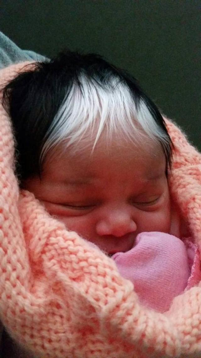 Mas sua mãe queria que sua filha nascesse com essa marca especial, porque essa mecha branca é um traço distintivo que é passado de geração em geração em sua família.