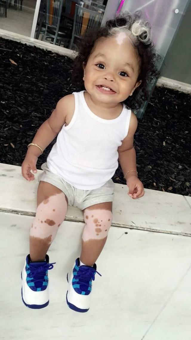 Caso contrário, também podemos ver uma despigmentação da pele de MilliAnna em parte de suas pernas, mas isso não estraga o charme desta adorável menina.