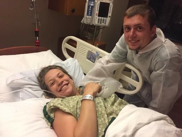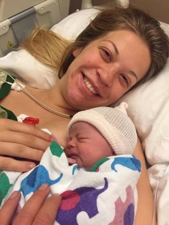 "Eles me fizeram esperar enquanto a matrona esperava a chegada da equipe e imediatamente me levaram para a sala de cirurgia. Eles me anestesiou antes que Dalton pudesse chegar lá e começou a tirá-lo - tudo correu bem e ele chorou um pouco, mas precisava de oxigênio.