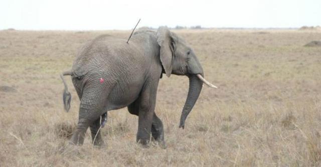 O elefante foi ferido por homens da tribo Maasai no Quênia. Segundo eles, a besta se aproximava perigosamente de sua aldeia, forçando-os a agir assim.