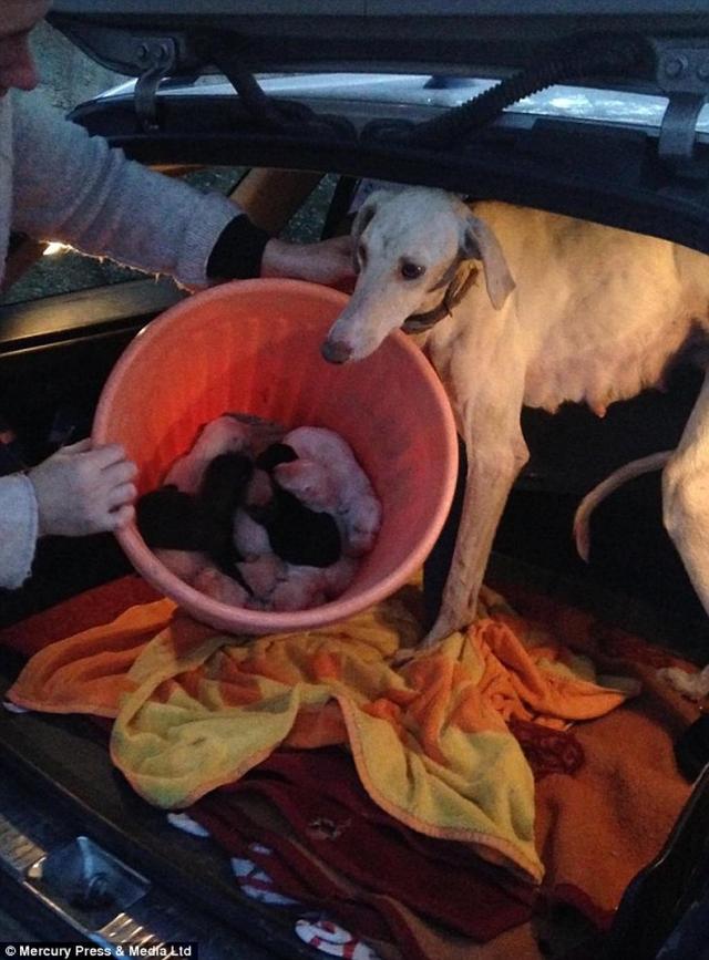 "Obviamente, nós tivemos uma decisão a tomar", disse Lianne ao The Daily Mail. "Se houvesse filhotes, eles lentamente morreriam de fome, a menos que os encontrássemos. Precisamos da ajuda do galgo, mas não sabíamos se ela confiaria em nós para nos levar até lá. "