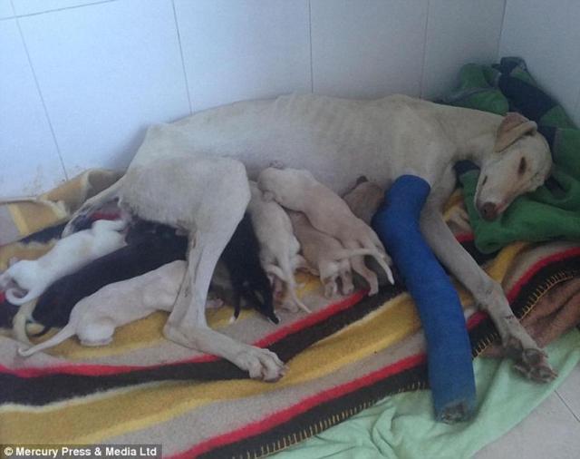 Vera é um cão galgo que foi encontrado vagando pelas ruas do sul da Espanha. Ela tinha uma perna quebrada e tinha muita dificuldade para andar.