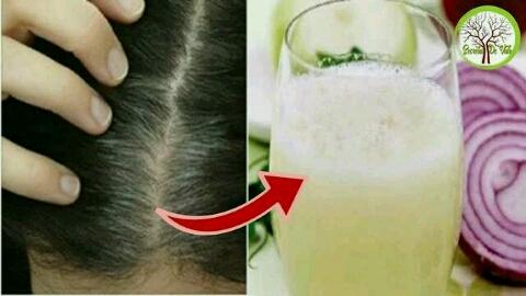 Esfregue a cebola no ralador, esprema o suco e esfregue no couro cabeludo.