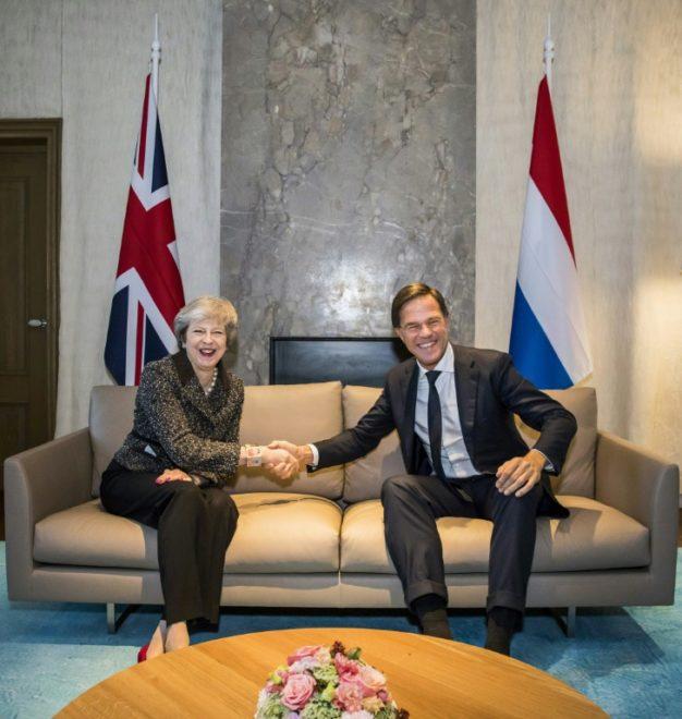 British Prime Minister Theresa May was in The Hague Tuesday for talks with Dutch Prime Minister Mark Rutte before heading to Berlin to meet Angela Merkel and on to Brussels as she bids to salvage her Brexit plan© ANP/AFP Bart Maat