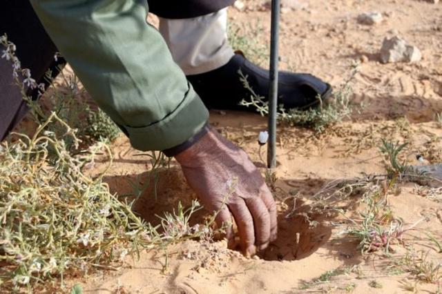 For hours he wanders across the desert by foot or in his pickup truck, covering dozens of kilometres (miles) and stopping at several spots to scratch the sand with his hands or a cane in search of white truffles.