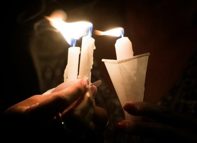 People hold candles as they pray during a candlelight vigil at the Immanuel Church for victims of the El Paso shooting© AFP Mark RALSTON