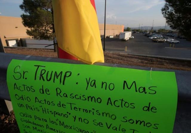A message to President Trump left at a makeshift memorial urges him in Spanish to stop engaging in racism and hatred© AFP Mark RALSTON