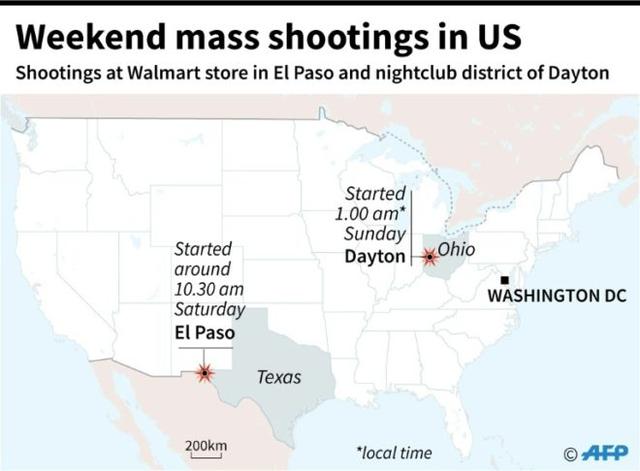 Weekend mass shootings in the US© AFP Jonathan WALTER