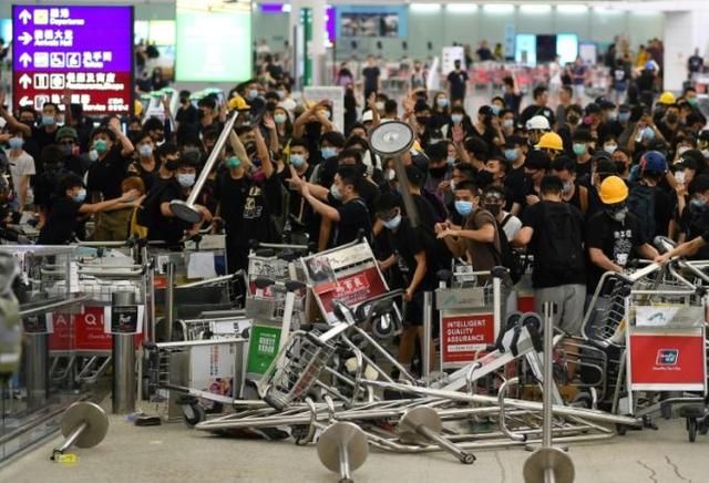 After initially just voicing their demands with peaceful demonstrations, the protesters adopted more aggressive tactics on Tuesday and created barricades with luggage trolleys to block passengers at the departure halls.