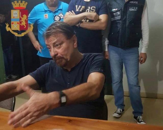 The fugitive could be seen walking casually about Santa Cruz in sunglasses and a blue T-shirt, in surveillance footage taken hours before his capture. He gave up without a struggle, according to Italian government sources.