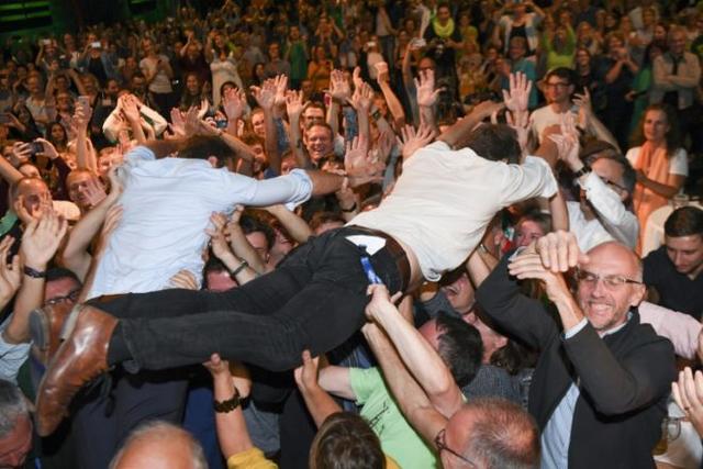 The biggest winners were the Greens, who crowdsurfed in joy after becoming Bavaria’s strongest party© dpa/AFP Sven Hoppe
