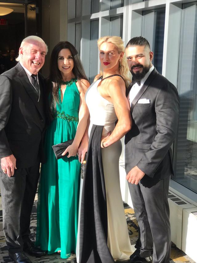 Charlotte Flair also shared an image of herself, Andrade, Ric Flair and his current wife, Wendy Barlow, while Andrade tweeted to Charlotte today saying “Today is your night!! #MyBeautifulLady @MsCharlotteWWE.” You can check out those images below.