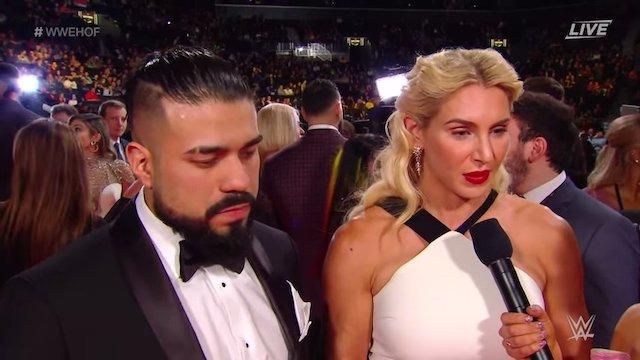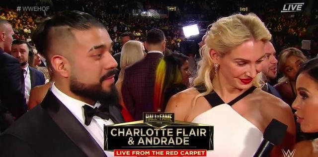 – As previously reported, Charlotte Flair and Andrade, who have rumored to have been dating in recent weeks, appeared on the red carpet together for last night’s WWE Hall of Fame Ceremony. During the show, they were also interviewed by Charly Caruso, which you can see below at the 52:24 mark.