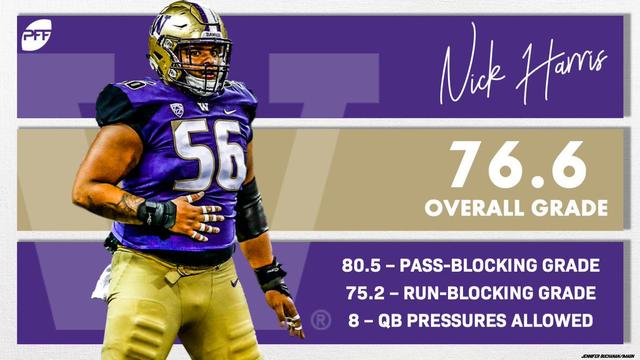 - Harris is the best center in the conference. He’s position versatile as well. Work ethic and motor are a plus. Footwork is an issue that he needs to correct. If that 287 weight is real then he needs to add a few more pounds to take on the bigger defensive linemen he’ll face at the next level.