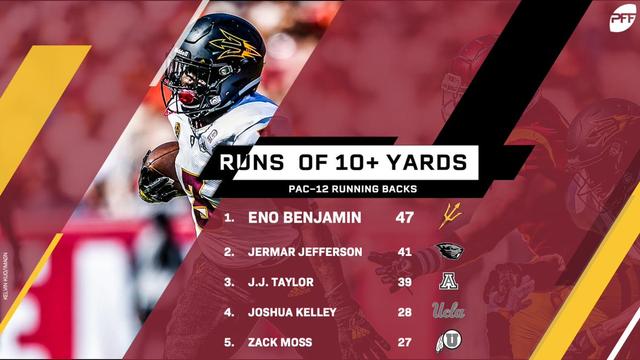 - Benjamin has been one of the best running backs in the conference the past two years (a title not lightly given the RB depth in the Pac-12). He won’t break the game wide open but has enough speed to get to where he needs to go. Gets a little lost in between the tackles at times. Improved vision and IQ. He should be drafted relatively high should he elect to go pro after this season.