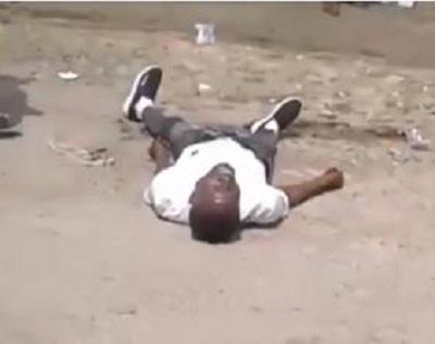 The young man is seen in the video lying unconcious.