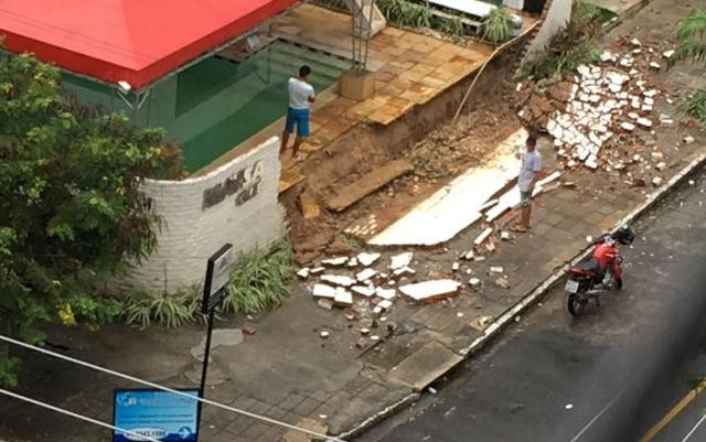 Moradores de Setúbal, em Boa Viagem, relataram a queda de um muro de uma academia. Imagens foram enviadas ao WhatsApp da TV Globo. No Alto José Bonifácio, ocorreu um problema em uma obra irregular. Uma serralharia foi atingida por pedaços de um muro, segundo moradores.