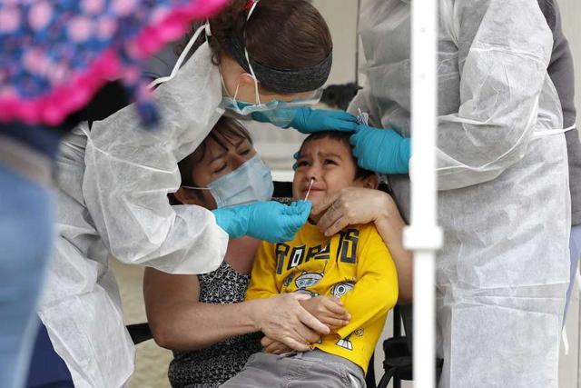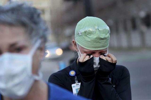 This week’s selection includes a young boy being restrained by his aunt and medical workers as a swab is placed in his nose during a COVID-19 test at a walk-up testing site in Annapolis, Maryland; nurses and doctors clearing the area before defibrillating a patient with COVID-19 who went into cardiac arrest at St. Joseph’s Medical Center in Yonkers, New York; a man sifting through the rubble searching for his wallet in Onalaska, Texas, after a tornado destroyed his home the night before; and a couple playing volleyball on the sand in Huntington Beach, California.