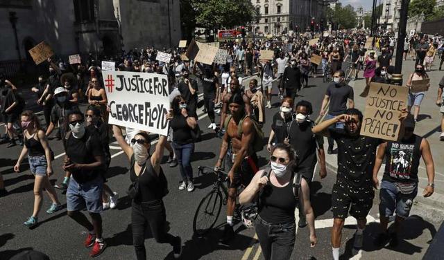 In the London suburb of Croydon, hundreds of protesters gathered this week —standing the required coronavirus social distance of 2 meters (6½ feet) apart —and took a knee in memory both of Floyd and of Olaseni Lewis. The local man died in 2010 while being restrained by police at a psychiatric hospital.