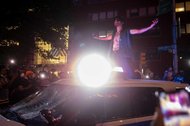 The NYPD said at least 120 people were arrested and at least 15 police vehicles destroyed
