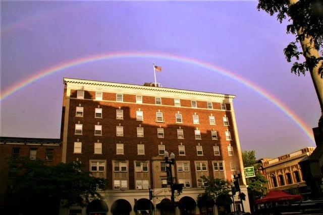 Don Bell of Troy captures a rainbow over the Hendrick Hudson hotel in Monument Square.
