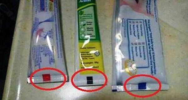 - Red square at the bottom means that the toothpaste has been made of chemical and natural substance combination;