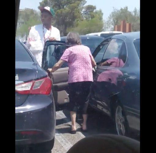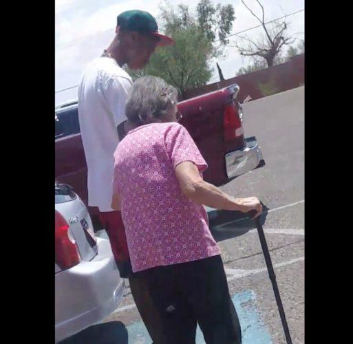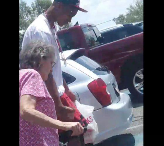 The story continues: “At first, I wasn’t sure what was going on because I was in the car and couldn’t hear the dialogue between the two. Then next thing I see is the elderly lady handing my son her bag of food and then she motioned for him to get on the other side of her. That’s when I realized what was happening. I pulled out my phone to take a picture as well as record the events so that his mom and grandparents could see what I witnessed as well.”