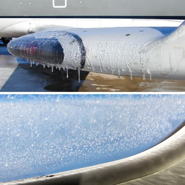 In very cold weather, the surfaces of planes are covered with special chemicals that prevent icing during the flight. If this is not necessary, the cover is not put on. But the chances of icing are still pretty high.