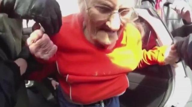 An officer tells the pensioner “We don’t want to hurt you”