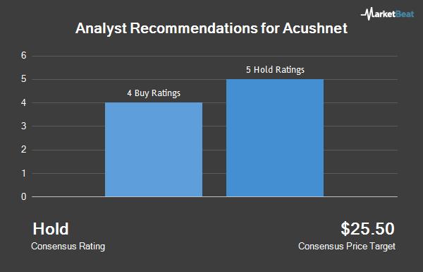 Several research analysts have commented on the stock. Compass Point downgraded shares of Acushnet from a “neutral” rating to a “sell” rating and increased their price objective for the company from $23.00 to $23.50 in a report on Tuesday, October 29th. downgraded shares of Acushnet from a “buy” rating to a “hold” rating in a report on Thursday, September 26th. Imperial Capital increased their price target on shares of Acushnet from $24.00 to $27.00 and gave the company an “inline” rating in a report on Friday, November 1st. raised shares of Acushnet from a “hold” rating to a “buy” rating and set a $33.00 price target for the company in a report on Tuesday, November 5th. Finally, Wells Fargo & Co increased their price target on shares of Acushnet from $25.00 to $28.00 and gave the company a “market perform” rating in a report on Tuesday, November 5th.