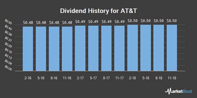 AT&T Inc. (NYSE:T) declared a quarterly dividend on Tuesday, December 17th, Wall Street Journal reports. Shareholders of record on Friday, January 10th will be given a dividend of 0.52 per share by the technology company on Monday, February 3rd. This represents a $2.08 annualized dividend and a dividend yield of 5.40%. The ex-dividend date is Thursday, January 9th. This is an increase from AT&T’s previous quarterly dividend of $0.51.