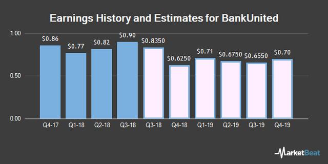 BankUnited (NYSE:BKU) last announced its quarterly earnings data on Wednesday, October 23rd. The financial services provider reported $0.77 earnings per share for the quarter, beating analysts’ consensus estimates of $0.71 by $0.06. BankUnited had a return on equity of 9.76% and a net margin of 18.04%. The company had revenue of $223.55 million for the quarter, compared to analyst estimates of $224.93 million. During the same quarter last year, the firm posted $0.90 EPS.