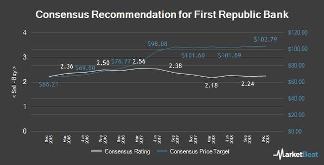 Several other analysts also recently commented on the company. Maxim Group increased their target price on First Republic Bank from $116.00 to $125.00 and gave the company a “buy” rating in a research note on Tuesday, November 26th. JPMorgan Chase & Co. increased their price target on First Republic Bank from $118.00 to $125.00 and gave the company an “overweight” rating in a report on Tuesday, November 5th. Citigroup increased their price target on First Republic Bank from $111.00 to $119.00 and gave the company a “buy” rating in a report on Wednesday, October 16th. BMO Capital Markets increased their price target on First Republic Bank from $97.00 to $103.00 and gave the company a “market perform” rating in a report on Wednesday, October 16th. They noted that the move was a valuation call. Finally, Morgan Stanley increased their price target on First Republic Bank from $100.00 to $108.00 and gave the company an “equal weight” rating in a report on Thursday, December 12th. Two equities research analysts have rated the stock with a sell rating, ten have given a hold rating and five have issued a buy rating to the stock. The company has an average rating of “Hold” and a consensus price target of $109.50.