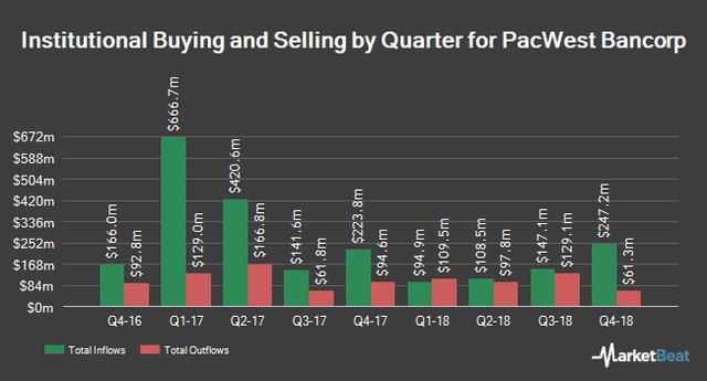 Other institutional investors have also recently made changes to their positions in the company. Rockefeller Capital Management L.P. grew its stake in PacWest Bancorp by 48.0% in the second quarter. Rockefeller Capital Management L.P. now owns 965 shares of the financial services provider’s stock valued at $37,000 after acquiring an additional 313 shares during the period. Parallel Advisors LLC grew its stake in PacWest Bancorp by 116.6% in the third quarter. Parallel Advisors LLC now owns 1,189 shares of the financial services provider’s stock valued at $43,000 after acquiring an additional 640 shares during the period. Cerebellum GP LLC acquired a new stake in PacWest Bancorp in the third quarter valued at approximately $135,000. Point72 Asset Management L.P. acquired a new stake in PacWest Bancorp in the second quarter valued at approximately $105,000. Finally, Steward Partners Investment Advisory LLC grew its stake in PacWest Bancorp by 352.0% in the third quarter. Steward Partners Investment Advisory LLC now owns 3,634 shares of the financial services provider’s stock valued at $132,000 after acquiring an additional 2,830 shares during the period. 86.45% of the stock is owned by hedge funds and other institutional investors.