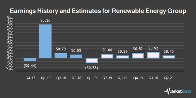 Analysts expect Renewable Energy Group Inc (NASDAQ:REGI) to post earnings of $0.02 per share for the current fiscal quarter, according to . Four analysts have provided estimates for Renewable Energy Group’s earnings. The highest EPS estimate is $0.15 and the lowest is ($0.10). Renewable Energy Group posted earnings of $0.66 per share during the same quarter last year, which suggests a negative year-over-year growth rate of 97%. The firm is expected to announce its next quarterly earnings report on Tuesday, March 3rd.