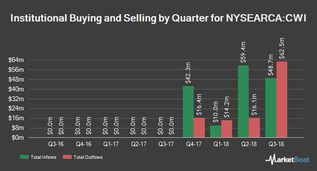 State Street Corp lifted its holdings in SPDR MSCI ACWI ex-US ETF (NYSEARCA:CWI) by 53.4% in the 3rd quarter, according to the company in its most recent disclosure with the Securities & Exchange Commission. The firm owned 1,005,721 shares of the company’s stock after buying an additional 350,017 shares during the period. State Street Corp owned about 1.44% of SPDR MSCI ACWI ex-US ETF worth $24,178,000 as of its most recent SEC filing.