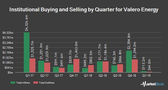 Other institutional investors and hedge funds have also recently modified their holdings of the company. Parallel Advisors LLC grew its position in shares of Valero Energy by 4.7% in the 3rd quarter. Parallel Advisors LLC now owns 2,541 shares of the oil and gas company’s stock valued at $217,000 after buying an additional 113 shares during the last quarter. Investors Research Corp increased its position in shares of Valero Energy by 4.4% during the third quarter. Investors Research Corp now owns 2,730 shares of the oil and gas company’s stock worth $233,000 after buying an additional 116 shares during the period. Liberty Wealth Management LLC raised its stake in Valero Energy by 18.4% during the third quarter. Liberty Wealth Management LLC now owns 754 shares of the oil and gas company’s stock worth $64,000 after buying an additional 117 shares during the last quarter. Adirondack Trust Co. raised its stake in Valero Energy by 27.1% during the third quarter. Adirondack Trust Co. now owns 610 shares of the oil and gas company’s stock worth $52,000 after buying an additional 130 shares during the last quarter. Finally, Smithfield Trust Co. raised its stake in Valero Energy by 7.0% during the third quarter. Smithfield Trust Co. now owns 2,114 shares of the oil and gas company’s stock worth $181,000 after buying an additional 139 shares during the last quarter. 75.64% of the stock is owned by institutional investors and hedge funds.
