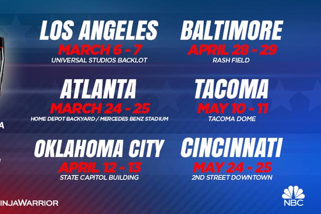 Los Angeles, Atlanta, Oklahoma City, Baltimore, and Las Vegas are repeat visits for the show. Cincinnati and Tacoma are brand new locations. Tacoma will be the first time American Ninja Warrior has visited the Pacific Northwest, something that was previously hinted at.