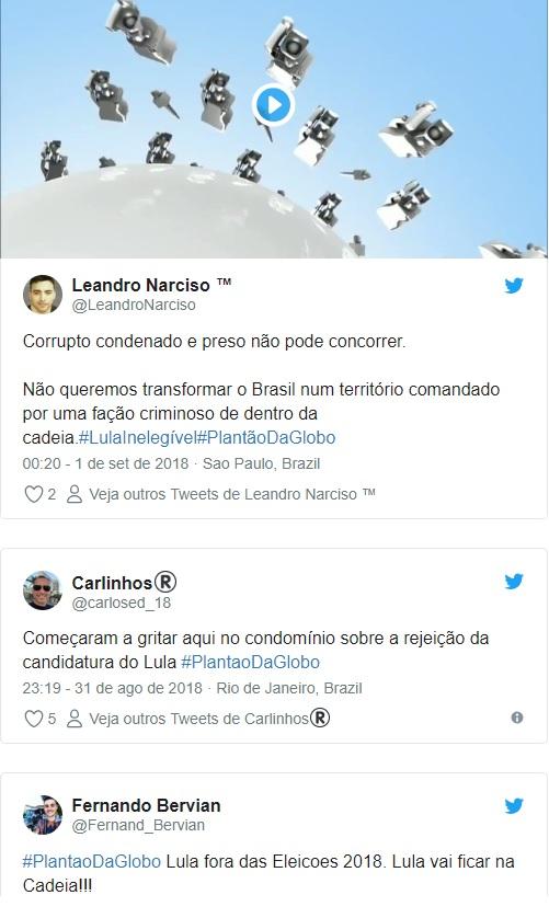 O plantão da emissora rendeu comentários na web. “Começaram a gritar aqui no condomínio sobre a rejeição da candidatura do Lula”, escreveu um perfil no Twitter. “Eu só estava esperando esse plantão, não tenho paciência de acompanhar a votação eles enrolam demais pra dizer sim ou não”, declarou outro.