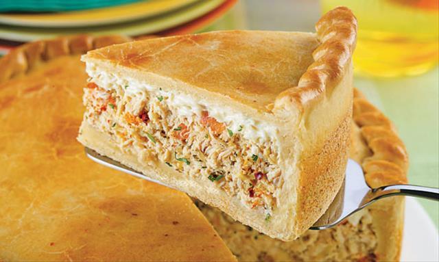 Pincele o empadão com a gema e leve ao forno médio (180° C), preaquecido, por aproximadamente 40 minutos