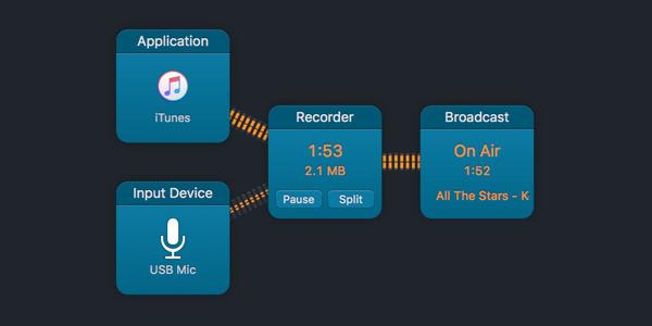 A second new block is the Input Switch block, which allows for the audio feed for a recording or stream to be switched between two inputs. For example, a live feed can be alternated between iTunes and a microphone using the block.