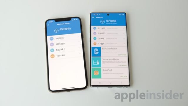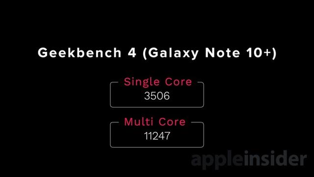 Apple's iPhone XS Max pulled well ahead in both single core and multi-core tests with 4790 and 11346. While the Note 10+ scored 3506 for its single core and 11247 for its multi-core.