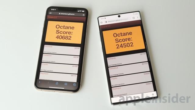 We then turned to the Octane 2.0 test. While Octane isn't being updated at present, it still gives a solid gauge of web performance. Here, the iPhone XS Max won easily with a score of 40682, significantly above the 24502 we saw from the Galaxy Note 10+.