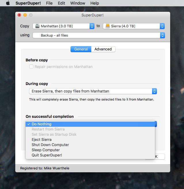 SuperDuper! aims to make backing up fast and painless - but also safe. Until you choose to dig deeper, it just asks what you want copied and where you want it copied to. Then before it does any copying, it keeps checking that you're sure this is what you want.