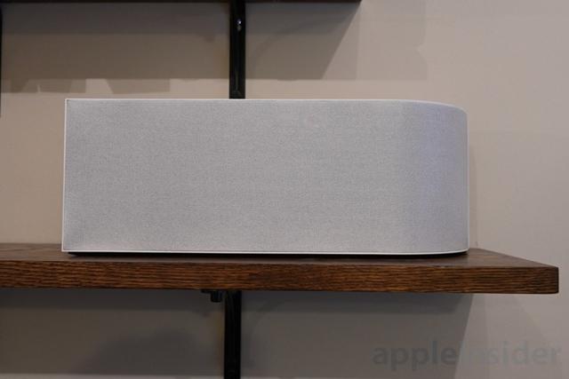 Wood surrounds the back, while the front is covered by a white fabric. The entire thing is quite heavy, which isn't an issue with a non-portable speaker.