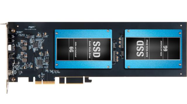 Sonnet's Fusion Dual 2.5-inch SSD RAID PCIe 3.0 card offers a solution for those who want to use normal SSDs, as it consists of an expansion card that fits into a full-length PCIe card slot. The 2.5-inch SSDs are held by the card, so there is no need to include extra SATA or power cables, or even to acquire a mounting system for the drives.
